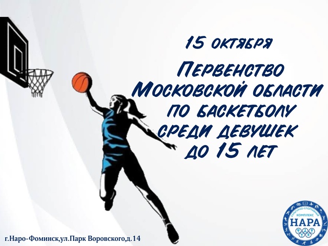 15 октября в МАУС"КСК"Нара" пройдет Первенство Московской области по баскетболу среди команд девушек до 15 лет.