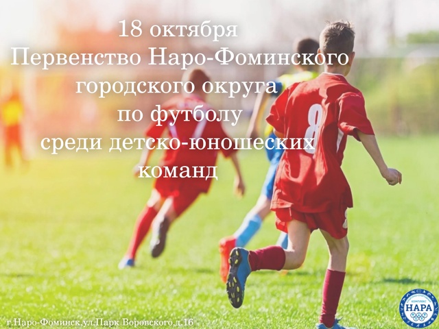 18 октября на стадионе МАУС"КСК"Нара" пройдут матчи в рамках Первенство Наро-Фоминского городского округа по футболу среди детско-юношеских команд.