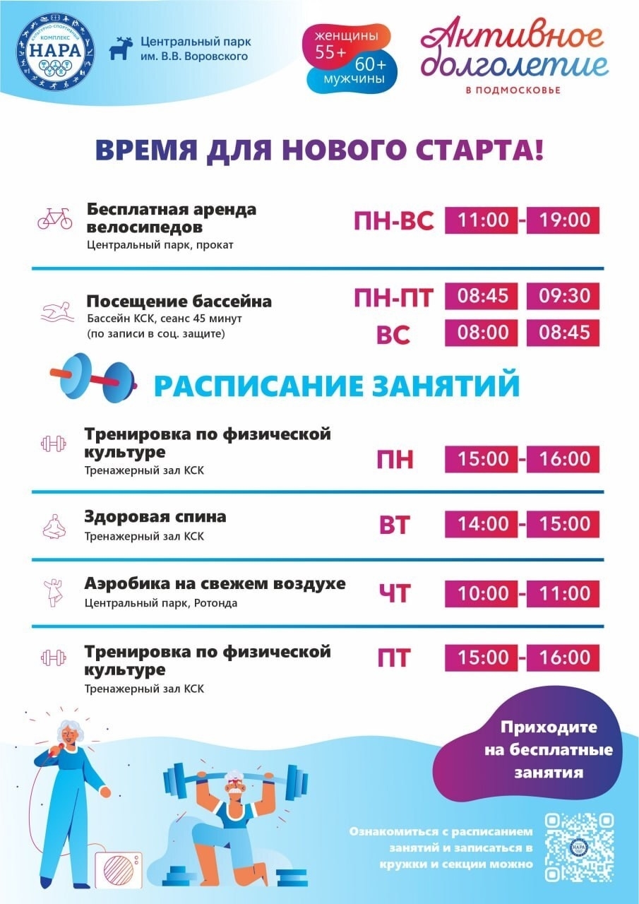 Программа «Активное долголетие» продолжает дарить энергию, здоровье и радость всем участникам! Дворец спорта «Нара» приглашает всех желающих присоединиться к нашей дружной и энергичной команде!