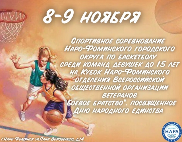 8-9 ноября в МАУС «КСК»Нара» пройдет спортивное соревнование по баскетболу среди команд девушек до 15 лет на Кубок БОЕВОЕ БРАТСТВО, посвященное Дню народного единства.