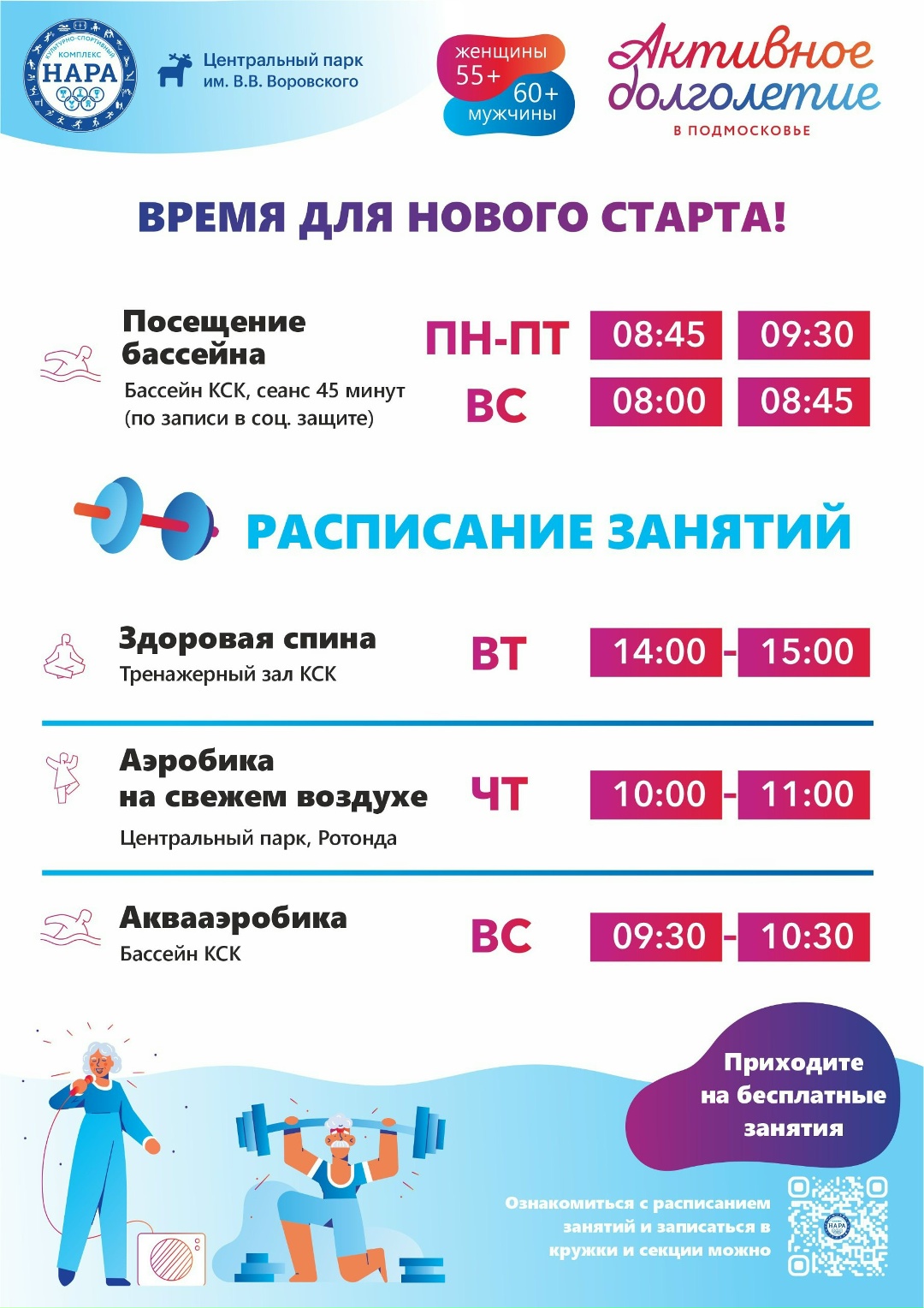 Программа «Активное долголетие» продолжает дарить энергию, здоровье и радость всем участникам! Дворец спорта «Нара» приглашает всех желающих присоединиться к нашей дружной и энергичной команде!