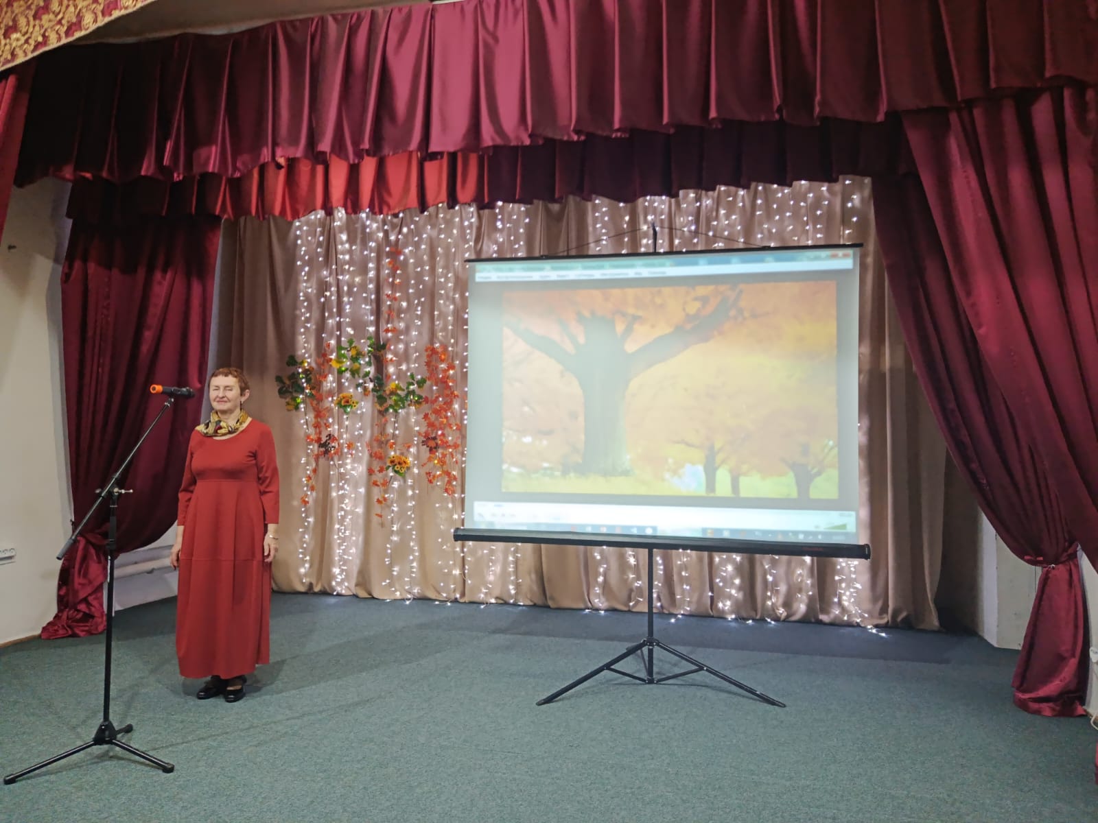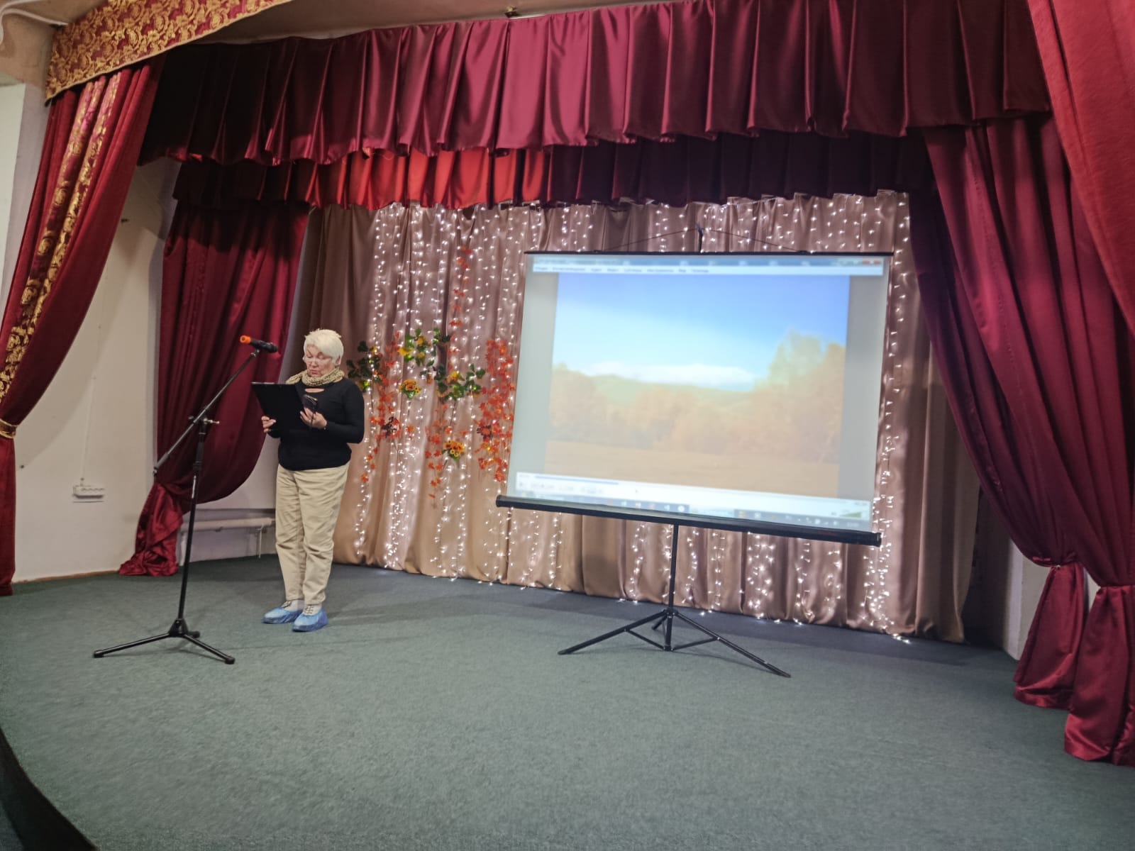 6 октября в клубе с.Атепцево состоялась литературно-музыкальная гостиная "Осенний вернисаж", с участием с клуба общения «Ивушка», в рамках проекта «Активное долголетие».В исполнении участниц клуба общения прозвучали замечательные стихотворения классиков и современных авторов, а также музыкальные произведения выдающихся композиторов. В зале царила одухотворенная атмосфера осенней красоты природы, передавая всю прелесть золотой осени посредством стихов, пейзажей и прекрасной музыки.
