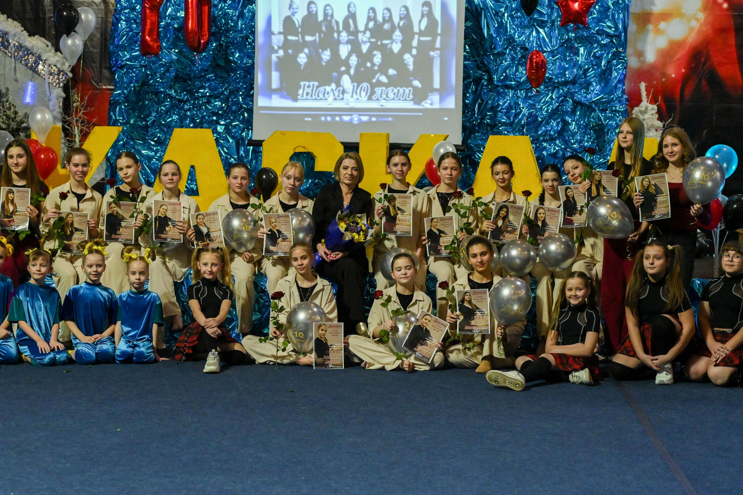 В преддверии Новогодних праздников в универсальном зале спортивного комплекса "Зодиак" состоялся юбилейный концерт танцевального коллектива "Каскад" - "Нам 10 лет". В программе праздника воспитанницы коллектива показали зрителям самые яркие танцевальные номера. Так же в концерте приняли участие танцоры среднего коллектива "Непоседы" и студия детского эстрадного танца "Динамика", а вокалистка группы "Задоринка" Виктория Пузрякова порадовала гостей праздника великолепными песнями. В конце праздника нашим юбиляршам были вручены памятные именные дипломы и конечно, какой юбилей без праздничного торта, родители поздравили руководителя и девочек с праздником!! Спасибо огромное всем нашим зрителям, гостям нашего мероприятия, кто пришёл и поддержал наших девочек теплыми и громкими аплодисментами!!! Так же хочется поблагодарить нашего звукорежиссёра Сергея Павловича Бородоченко за подготовку и проведение нашего торжества!