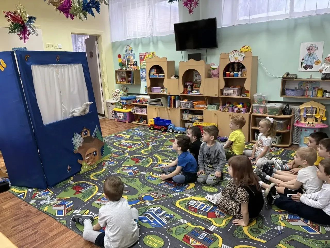 13 января в дошкольное отделение Атепцевской СОШ пришла сказка и принесла с собой интересную историю с захватывающим сюжетом . Ребята с удовольствием посмотрели кукольный спектакль «Зимняя история ежика и медвежонка» кукольного театра «Жили-Были», ребята узнали что любит дружба. Познакомились с особенностями зимнего леса и жизнью лесных зверей.