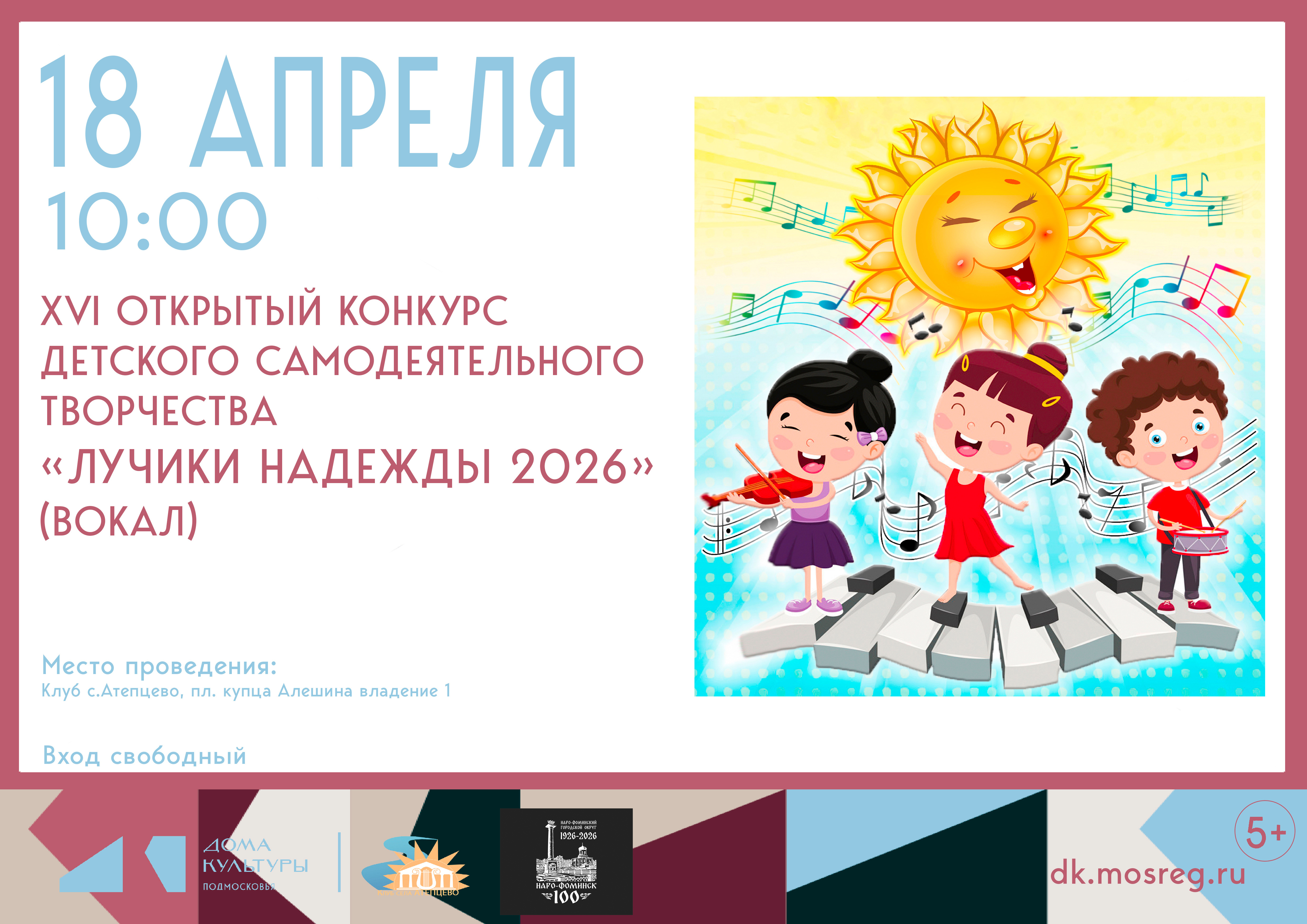 В клубе проводится большая работа по организации и проведению различных форм работы: праздничные концерты, народные гуляния, квесты, экологические акции, театральные анимации, новогодние представления, конкурсы и фестивали. Визитной карточкой нашего учреждения стал фестиваль детского народного творчества «Лучики Надежды», который собирает огромное количество участников из разных уголков Подмосковья.