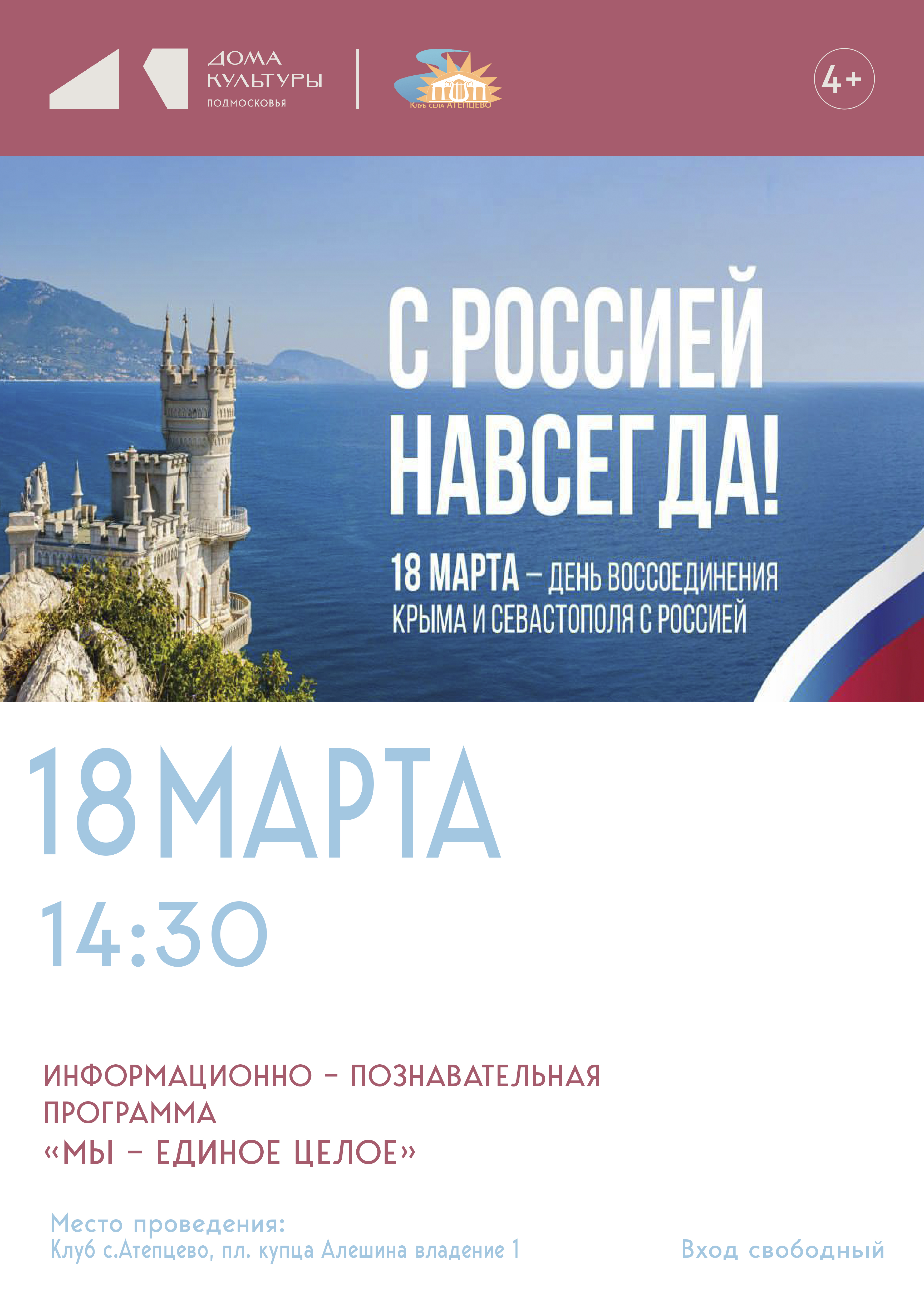 Клуб села Атепцево расположен в живописном месте на берегу реки Нара, на площади имени Купца Алешина, которая считается историческим местом Наро-Фоминского городского округа. Клуб функционирует с 2000 года и является центром культурных инициатив, досуга, общения и занятий самодеятельным и художественным творчеством жителей села.